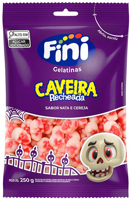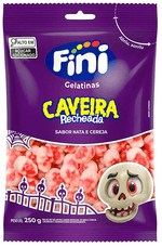 Bala de Gelatina Caveira recheada sabor nata e cereja de 250g cada - Fini
