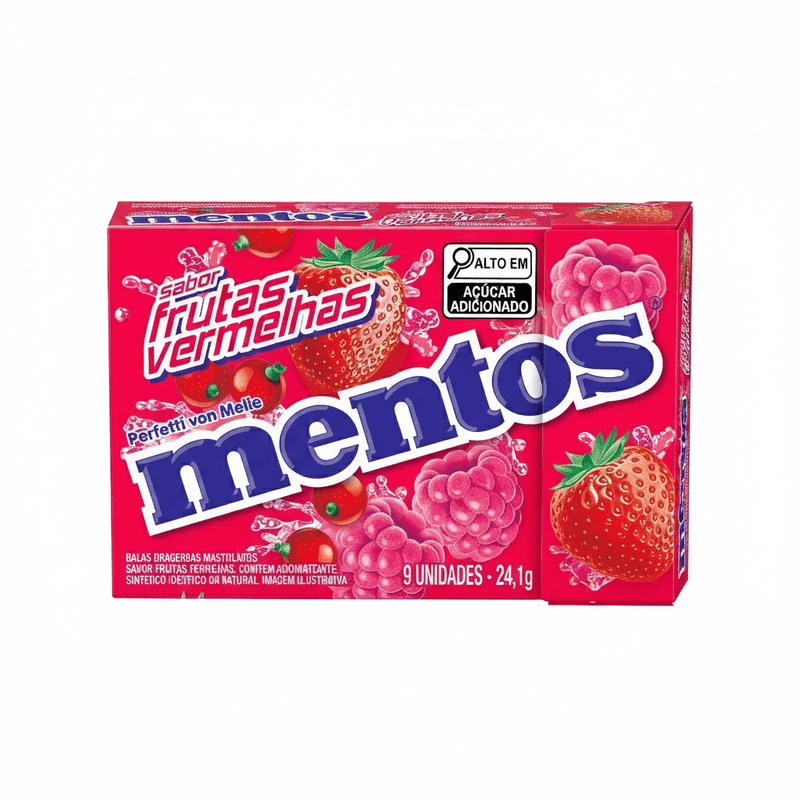 Bala Mentos Slim Box Sabor Frutas Vermelhas é uma bala mastigável, macia por dentro e crocante por fora e um sabor refrescante.